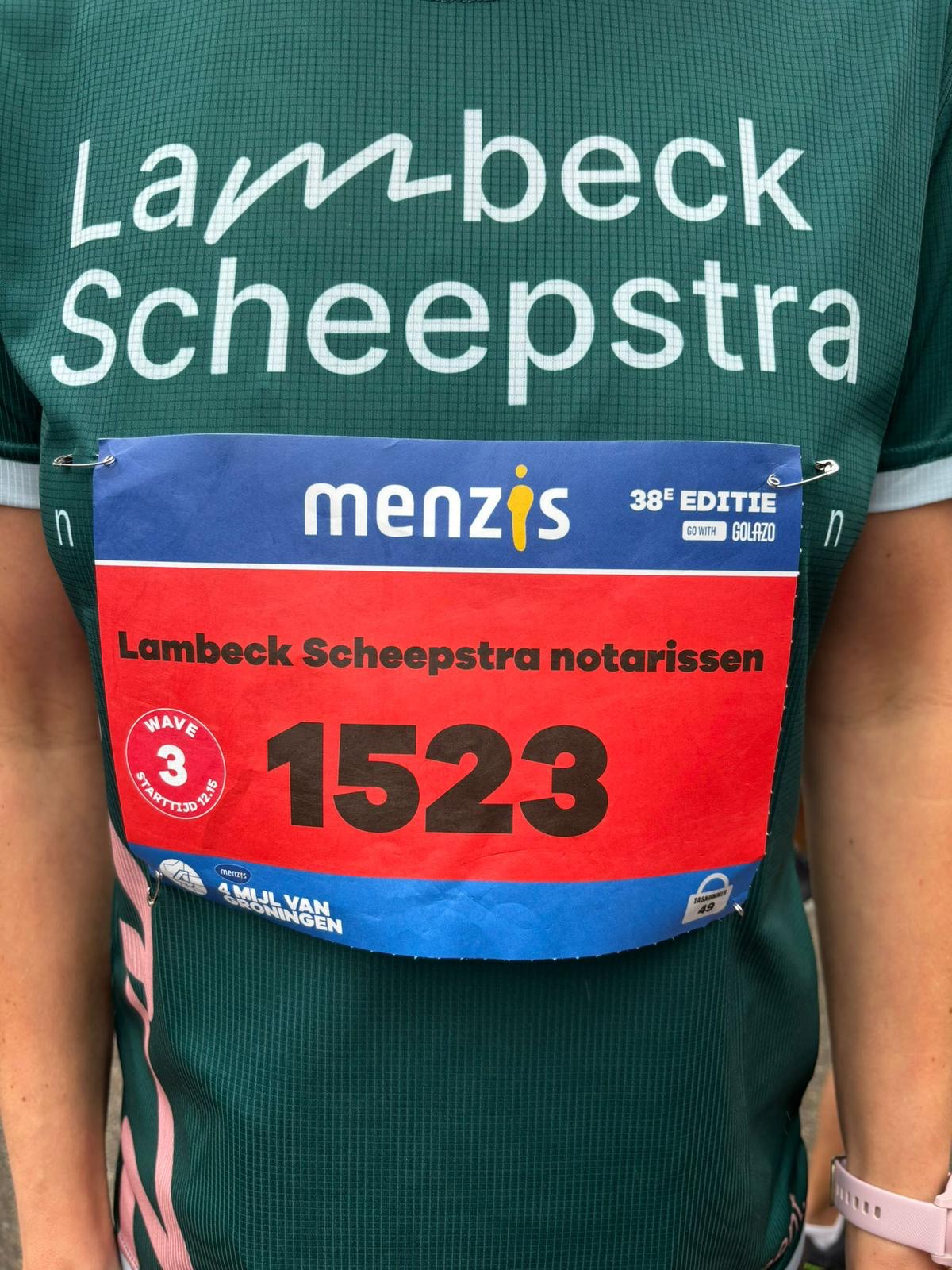 Op zondag 12 oktober stonden Marieke, Gert en Maaike namens Lambeck Scheepstra Notarissen aan de start van de 4 Mijl van Groningen.